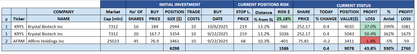 See below how the portfolio looks today. I updated my stop-loss level.