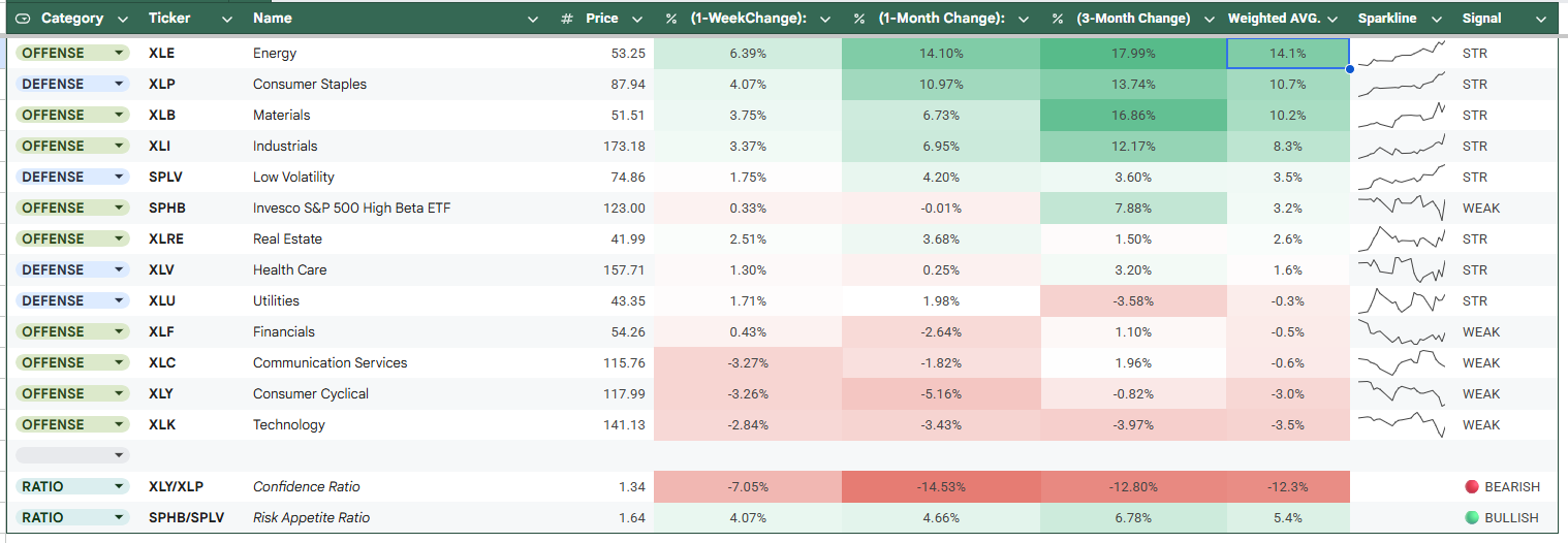 Energy, Staples, Materials, and Industrials are leading. Cyclicals and Technology have lagged over the last three months. This is not necessarily bearish, but Technology is definitely taking a break. The weakness in Cyclicals might reflect a weak consumer. As discussed before, the economy isn’t creating enough wealth for the middle and lower classes.