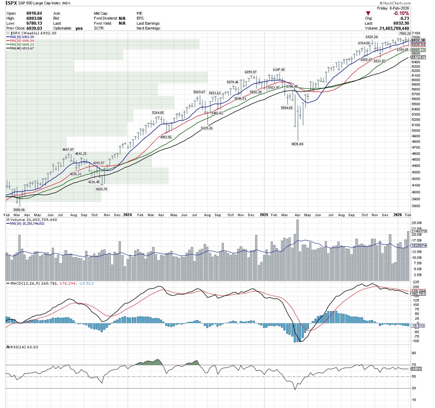 Support: ~6900 (10-week MA). This is the first “normal pullback” area.