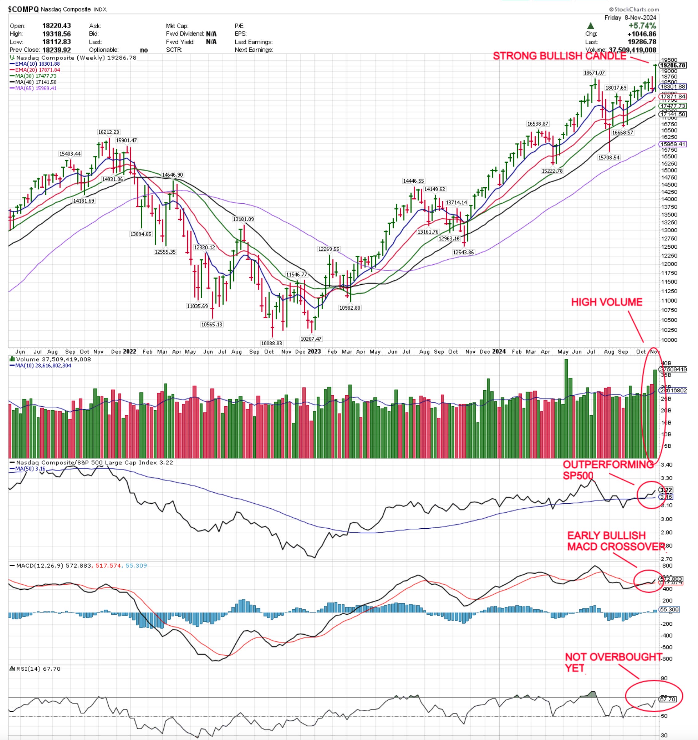 Let’s start with the NASDAQ weekly chart. The index had a very strong week, closing up +5.7%: